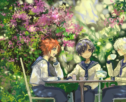 セーラー少年たちがお茶会してたら可愛いんじゃない^;;;;;^?と思って描いた一枚。
