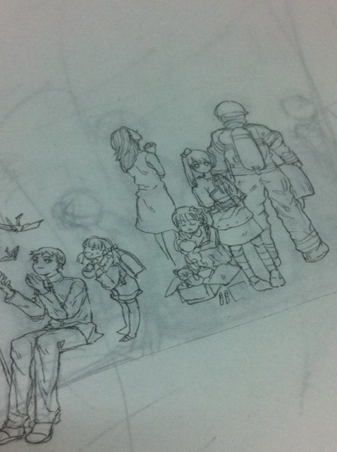 しいぺで、全部描こうと思っていたのですが、ラフから何十人も線画で仕上げられるか不安だったので、鉛筆で下書き→スキャン・着色でアップロードしようと思ってます。実は、初めての試みだったり^^鉛筆ってなんだか楽しい。