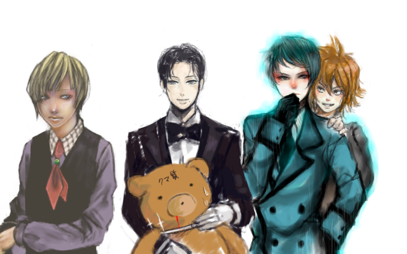 すどーが入室した時点で、にゅとさん、ハリ坊さん、kohiroさん、紺野さんのイケメン4人組みがほとんど描きあがっている状態で、ものすごい眼福でした!////いや~、リアルに素敵なものを拝めてむふふうふふvvな状態でした´/////`そのあと、紺野さんが退室され、にゅとさんもアトネ本の対応でロムになって、じゃあ、残ったメンバーで何描こうとなりまして、ハリ坊さんが「ホストかバトラーが…」と御告げになりました。バトラーって何だろう?闘う人のことかな?wと思って、ググってみたら、最高級の執事?のことだと分かりましたwwwみなさんの執事見たかったので、バトラーにしたい~vと我儘いったら、みなさん了承してくださり、こんなにムフフvvなバトラーさんを見ることができました↓