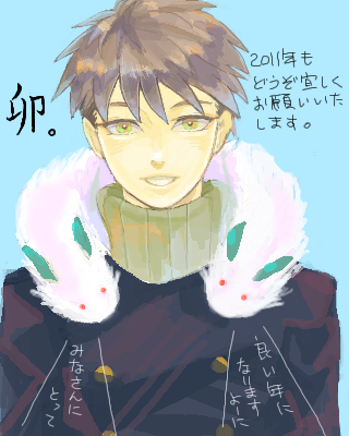 どうぞ2011年も宜しくお願いいたします。お年賀は、喪中で描けないので失礼しました><頂いた、素敵なお年賀は大切に掻っ攫わせていただきました!!ごちそうさまです\(^p^)/全ての掲載許可がとれましたらブログに保管させていただきますvv(あ、クリスマスカードも保管しなきゃww)