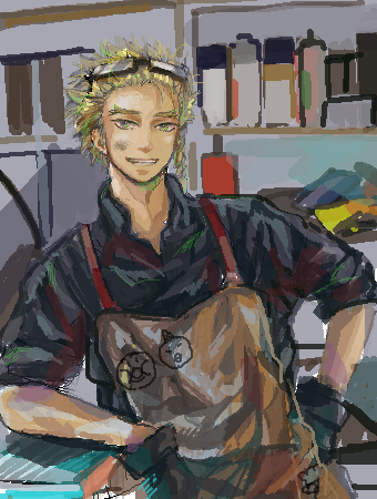 re060866.png作業着+キャラ物ラクガキ付エプロン+ゴーグル+汚れ