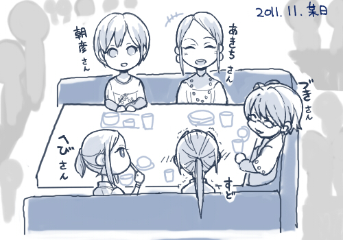あきちさんがピクマ(ピクシブのイベント)で東京にいらっしゃることがきっかけとなって、あきちさん、朝彦さん、へびさん、づきさんと集まることに…!